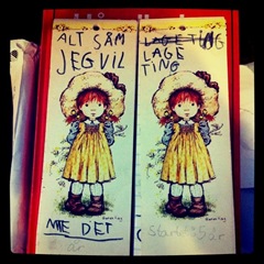 enjoying (pictured above): the surprise in the mail from dad: two notebooks from when I was 5 year old and a much needed handbook on the Norwegian language (thanks a lot dad! :) )